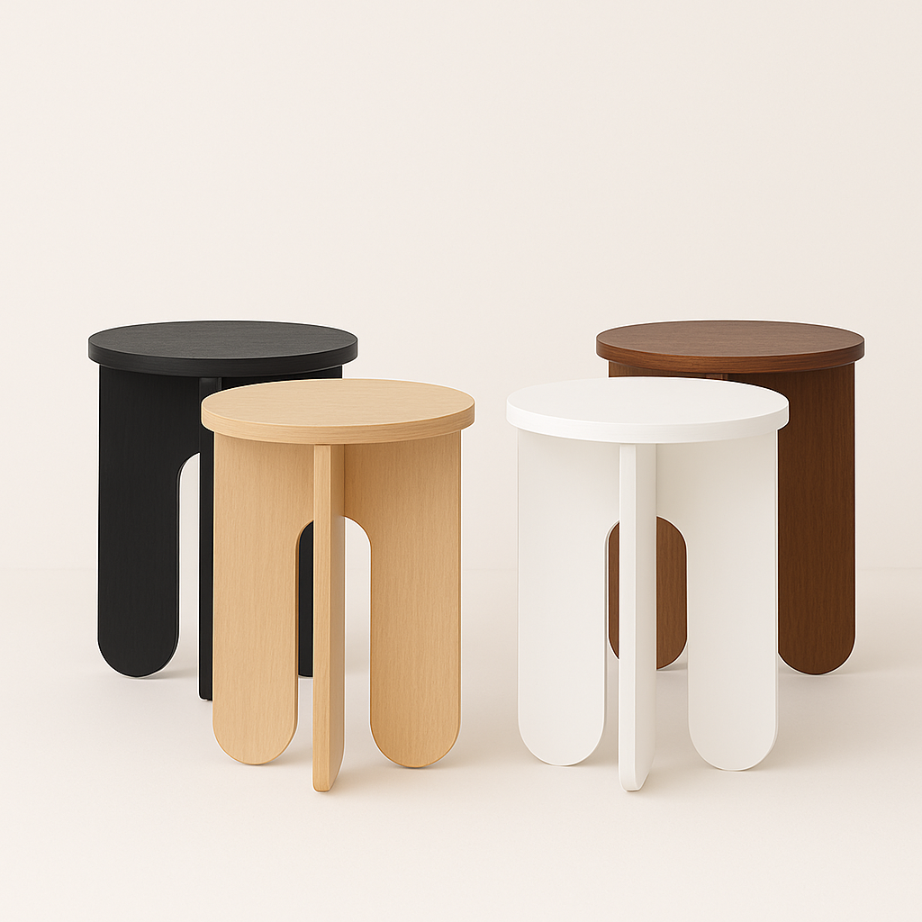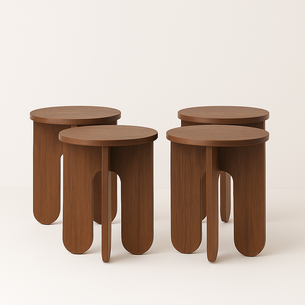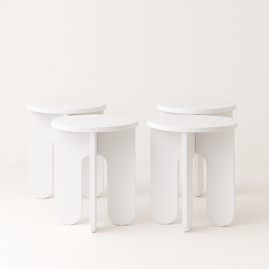 Quatre tables d’appoint épurées, parfaites pour meubler plusieurs espaces ou créer une composition harmonieuse.